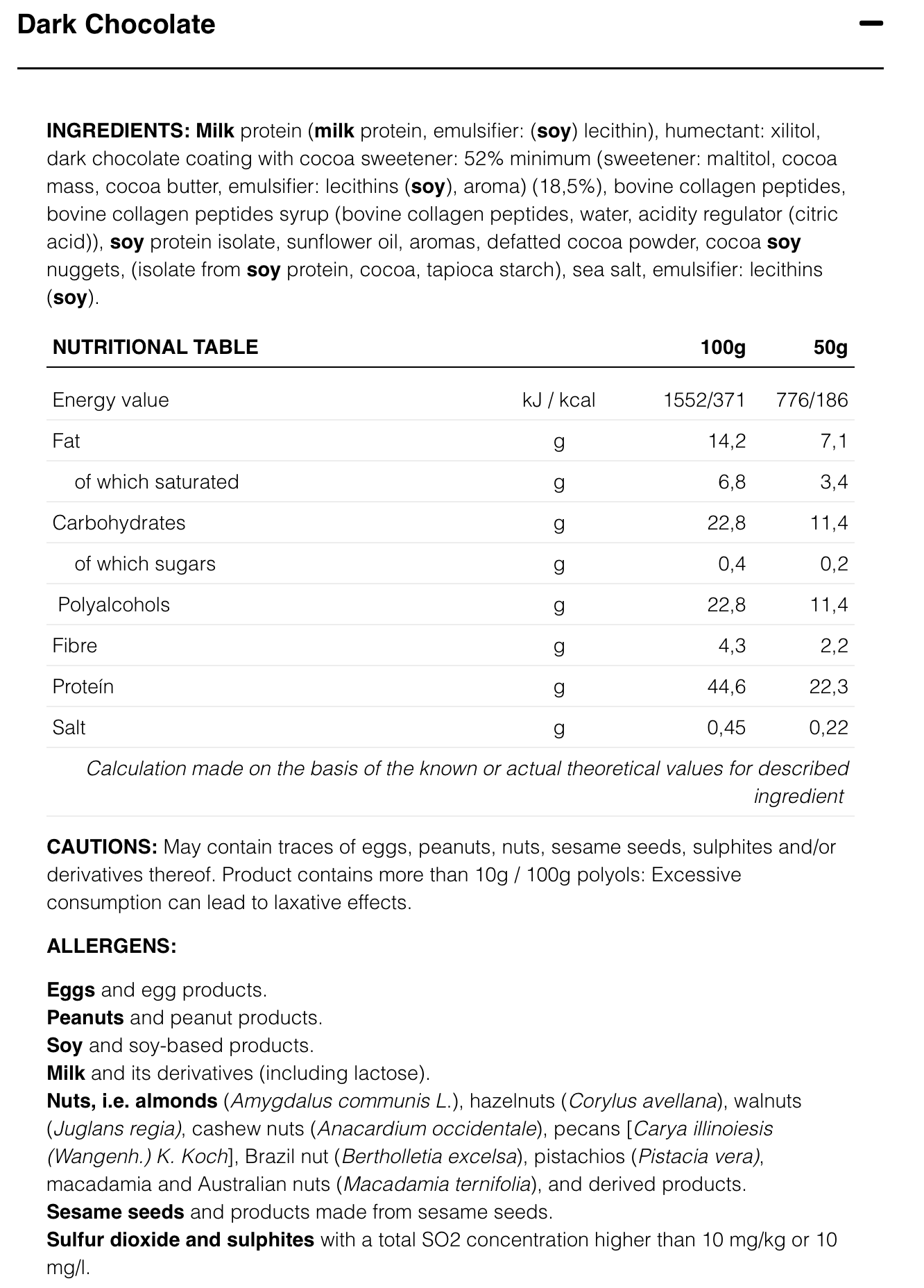 HOW TO USE: The bars can be eaten at any time of day, as a healthy snack, as an extra protein boost, between meals or after training mainly.