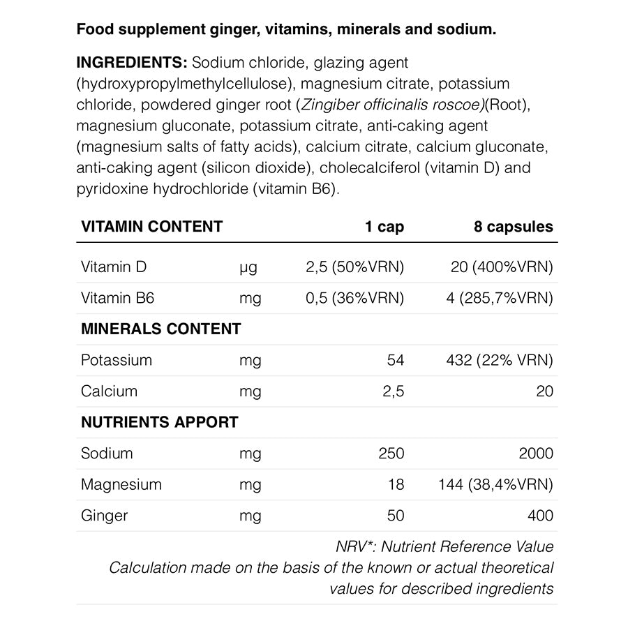 As for the minerals, sodium has been increased to 250mg and magnesium to 18,15mg, with potassium reduced to 54,01mg for lower levels than in the former mineral salt capsules.